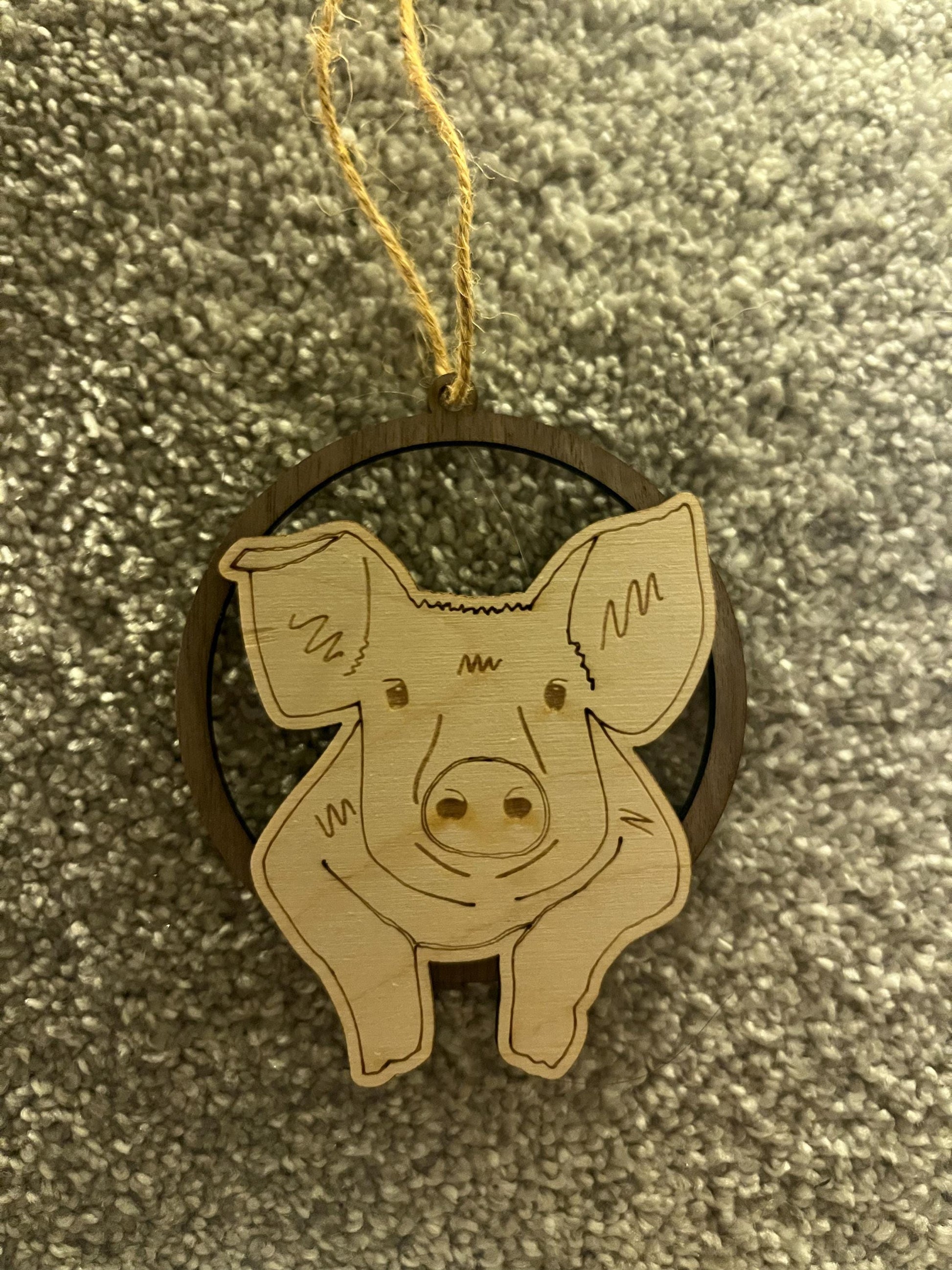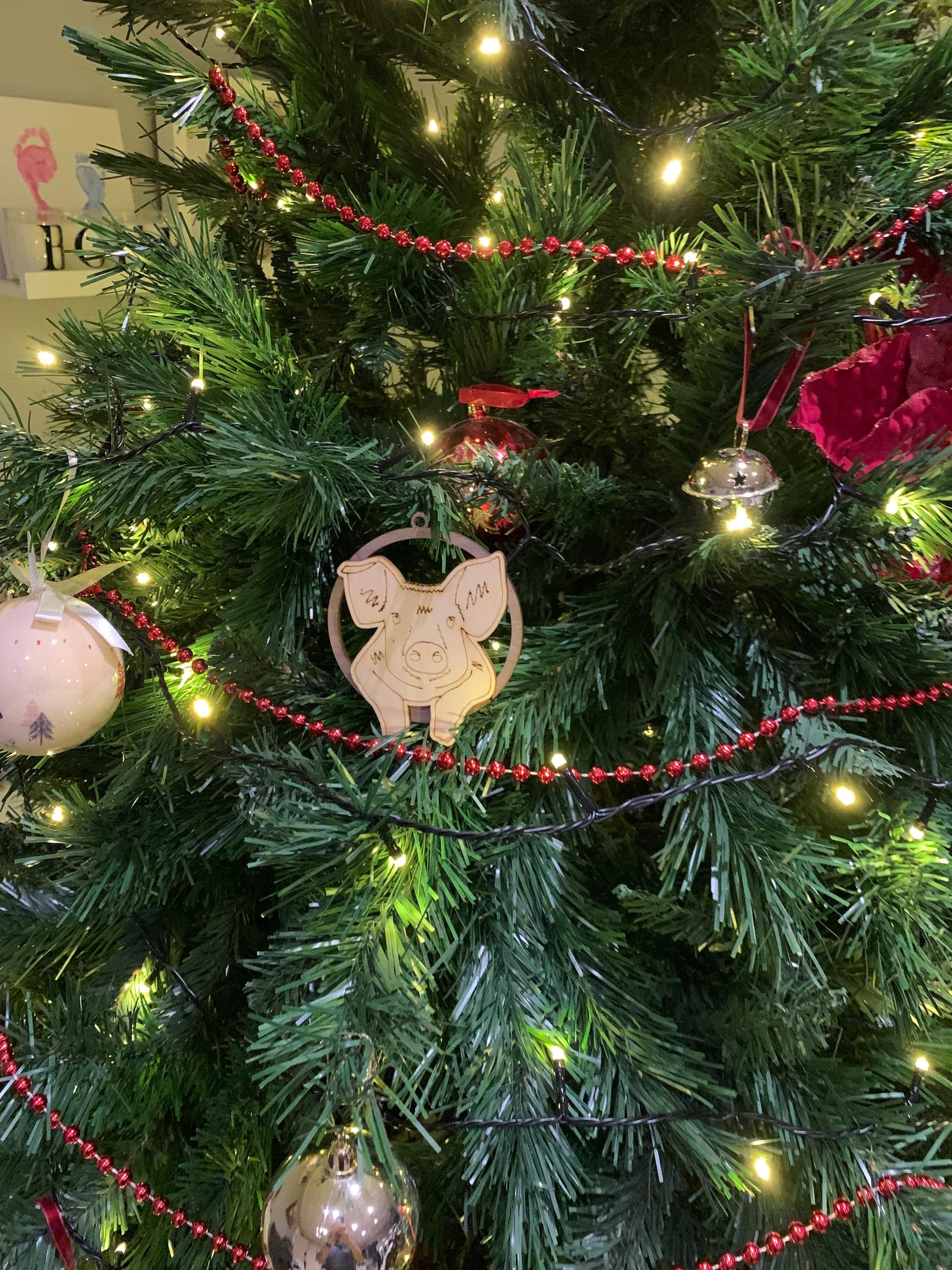 This plywood pig bauble is a fun and quirky addition to any Christmas tree.