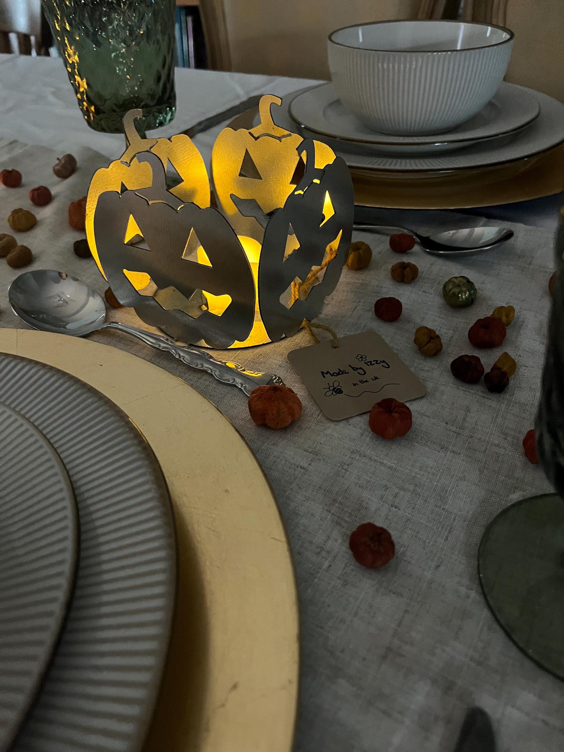 These pumpkin tea light holders are perfect as a table decoration on the window sill or door step.