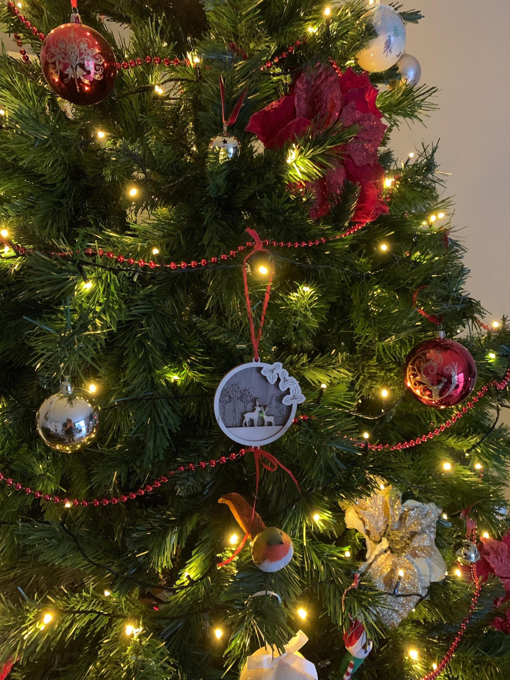 Add a touch of rustic charm to your Christmas tree with this adorable plywood reindeer bauble.
